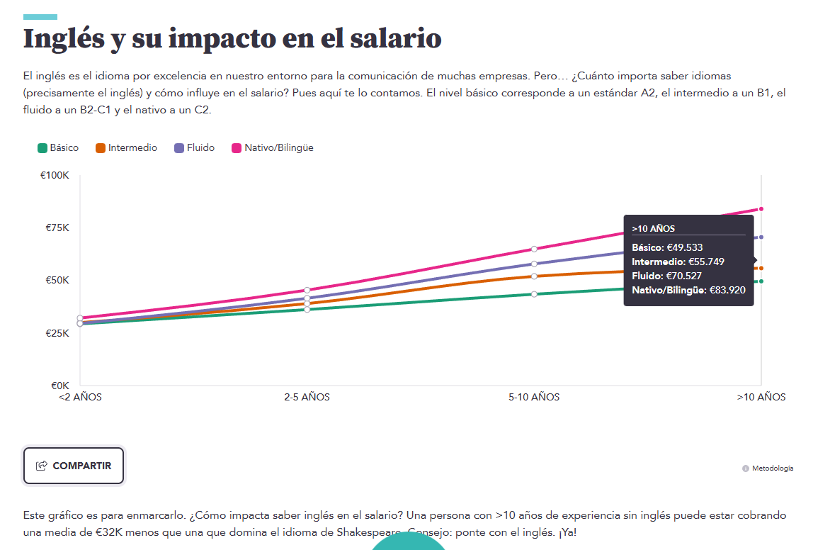 Yo personalmente he visto diferencias de hasta €15K de ofertas con inglés a sin inglés y oye, podemos amar la programación pero también ganar más dinero ¿No?